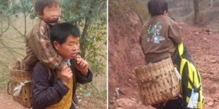 Karena tak ada bus sekolah atau transportasi publik yang bisa mengantar anaknya itu ke sekolah, maka Yu memutuskan satu-satunya alternatif adalah menggendong Xiao saat berangkat dan pulang sekolah.